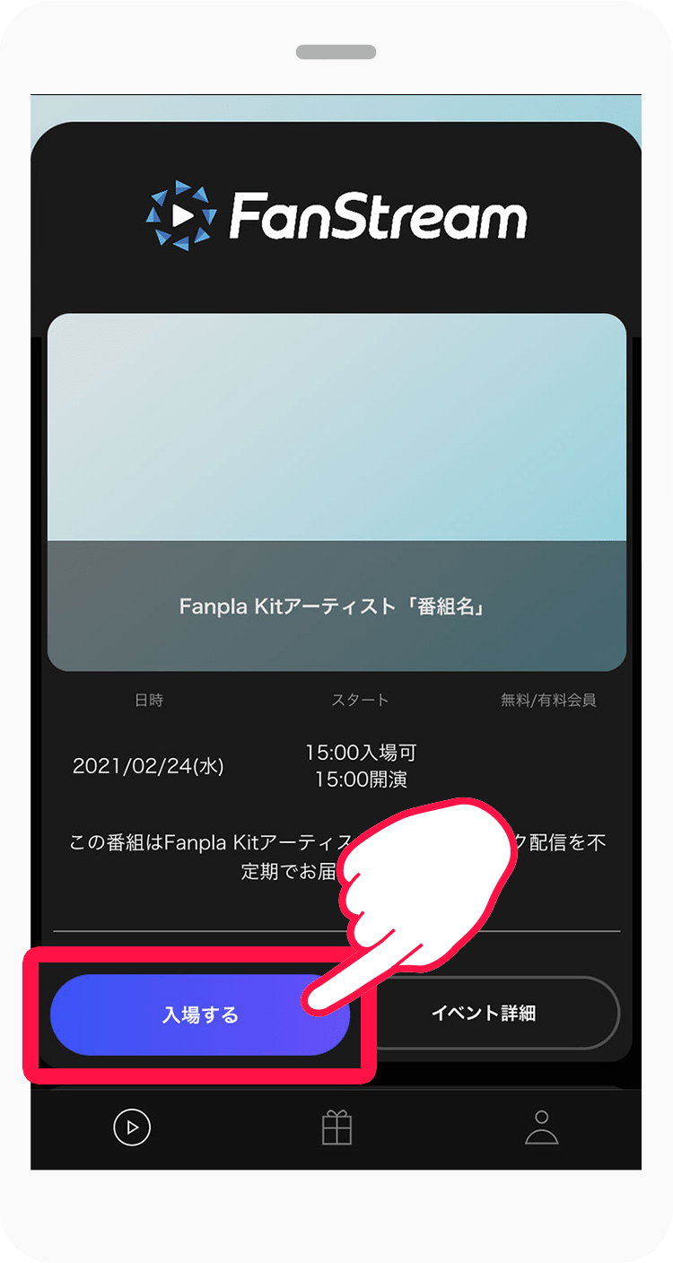 番組詳細から[入場する]を押して番組に入場してください。