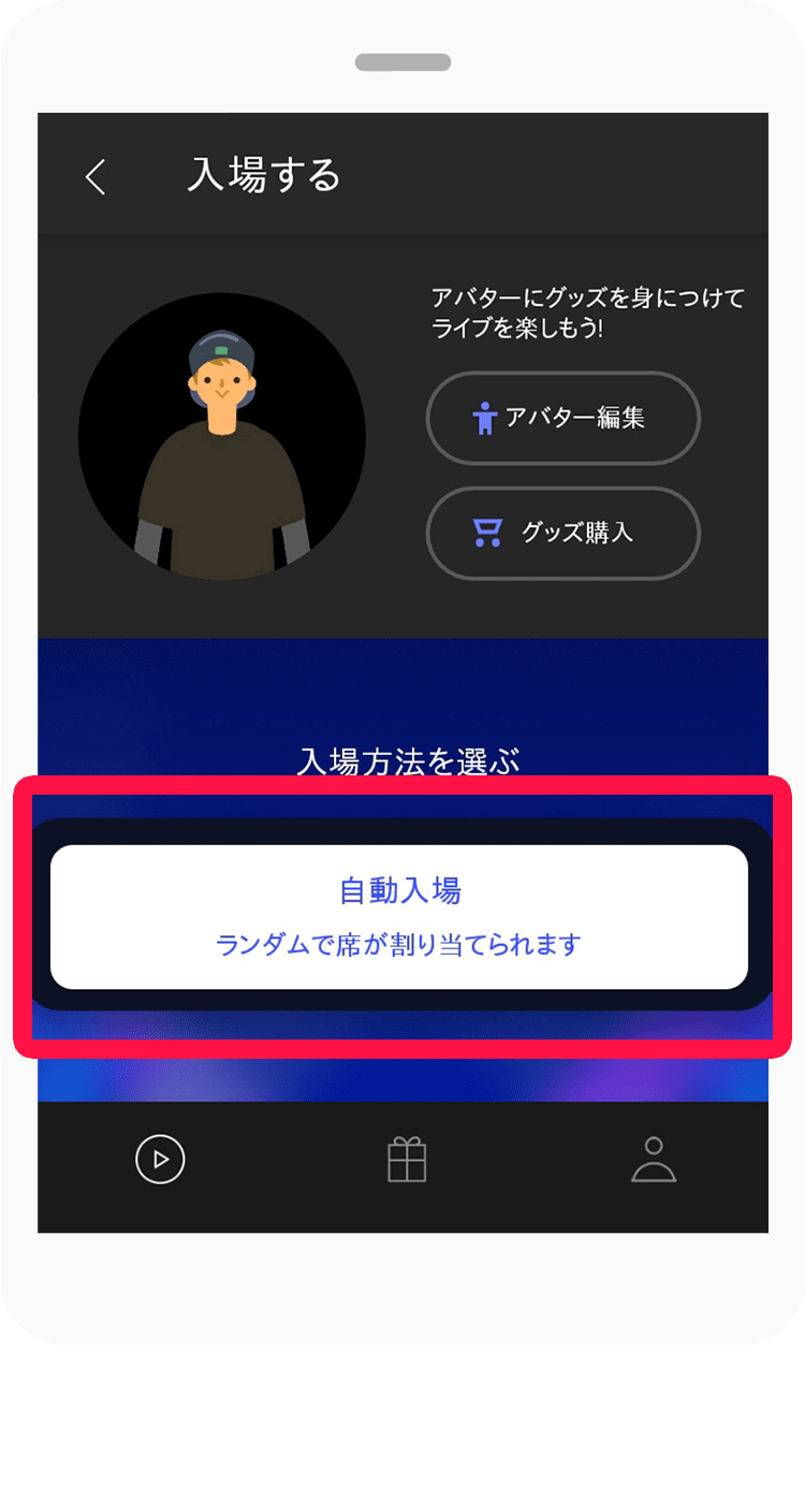 「自動入場」を押す